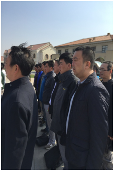 拓展前奏項(xiàng)目是15分鐘站軍姿,“腳跟靠攏并齊,兩腳尖向外分開約60度;兩腳挺直;小腹微收,自然挺胸;上體正直,微向前傾;兩肩要平,稍向后張;兩臂自然下垂,手指并攏自然微屈,拇指尖貼于食指的第二節(jié),中指貼于褲縫;頭要正,頸要直,口要閉,下頜微收,兩眼向前平視”,這一系列的動(dòng)作要領(lǐng)看似簡(jiǎn)單,但要都做到位也不是件容易的事。應(yīng)教官要求,所有人不得佩戴墨鏡,站在四級(jí)風(fēng)里,不管是風(fēng)吹亂了頭發(fā)還是面部奇癢,都必須保持一動(dòng)不動(dòng),隊(duì)列中任何一人出現(xiàn)絲毫失誤,全員受罰。當(dāng)有人出現(xiàn)失誤,教官宣布軍姿站立時(shí)間延長(zhǎng)時(shí),無人回頭觀望尋找“罪魁禍?zhǔn)?rdquo;,更無人發(fā)出聲響表示因被牽連而不滿,于是軍姿站立得越來越好,越來越標(biāo)準(zhǔn)。教官給大家講了軍人巴特擦皮鞋的故事,巴特自認(rèn)為已經(jīng)光亮如鏡的皮鞋一次次被軍官訓(xùn)責(zé)有塵土,重新擦拭,巴特沒有爭(zhēng)辯、沒有反抗,有的只是一次次的回應(yīng)“是的,長(zhǎng)官”“好的,長(zhǎng)官”“沒問題,長(zhǎng)官”……因?yàn)樵谲娙说母拍罾?,沒有個(gè)人主義,只有絕對(duì)的服從,這不僅僅是單純的命令服從,更是一種精神靈魂的凝聚。這讓我想起海軍出身的金港建設(shè)及其團(tuán)隊(duì)“令行禁止、指哪打哪兒”的行為作風(fēng),曾經(jīng)是公司立身寶馬廠區(qū)的行為準(zhǔn)則,可隨著時(shí)間的推移和工作內(nèi)容、共事人員的熟悉,這種“令行禁止”執(zhí)行得漸漸模糊了,作為管理人員的我們著實(shí)需要每隔一定時(shí)間就將沉淀在大家內(nèi)心深處的集體意識(shí)喚醒,點(diǎn)燃。