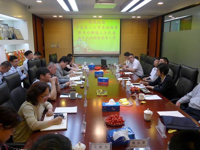 2017年5月8日,豐臺(tái)區(qū)人大常委會(huì)領(lǐng)導(dǎo)及豐臺(tái)街道人大代表一行十九人蒞臨公司檢查指導(dǎo)工作。公司董事長(zhǎng)譚子恒、總經(jīng)理宗書智、黨委副書記劉建東及公司經(jīng)理層人員均參加了此次交流活動(dòng)。